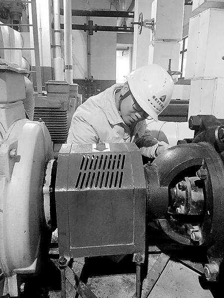 (邓凌静钟梦瑶摄影报道)图为蔡家香在检修设备。