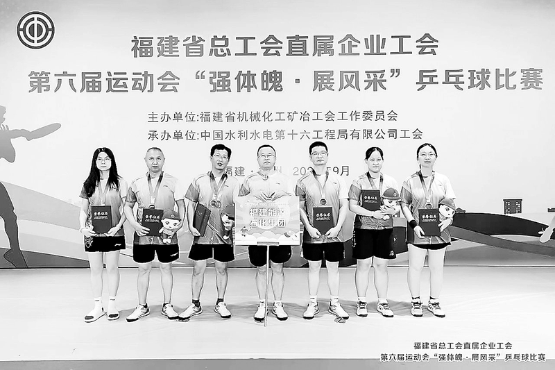 9月17日至19日,福建省总工会直属企业工会第六届运动会“强体魄展风采”乒乓球赛在福州收官,共有23支参赛队伍参加比赛。集团代表队获混合团体赛三等奖;张滢颖(右二)获女单一等奖,沈群峰(左三)获男单三等奖。 (刘宇花 摄)