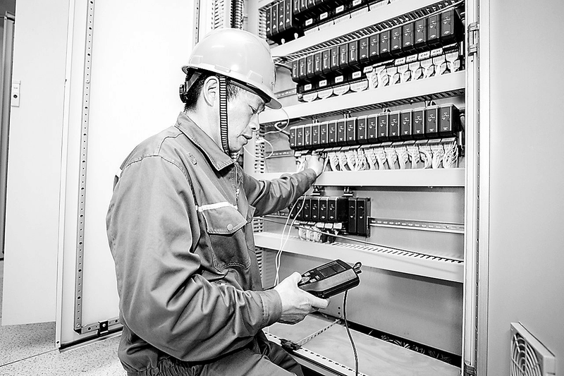 图为蔡鑫英进行DCS控制柜卡件巡检