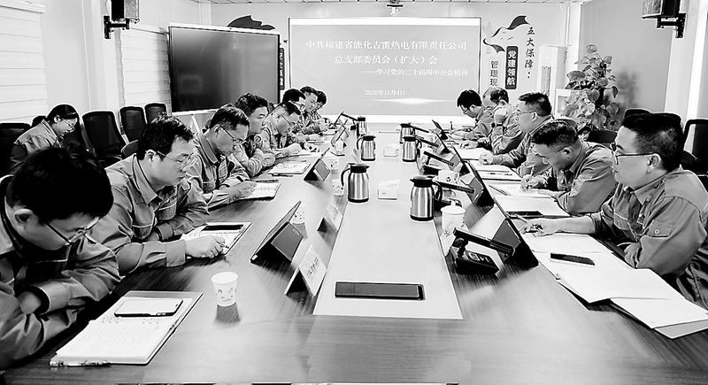 11月4日,古雷热电公司召开党总支(扩大)会议,专题学习贯彻党的二十届四中全会精神。会议传达学习了党的二十届四中全会公报、《中共中央关于制定国民经济和社会发展第十五个五年规划的建议》等主要内容。 (黄靖敬 许丽娜 摄)
