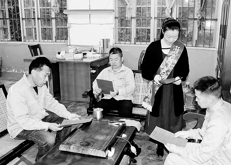近日,永安煤业公司上京供电所开展“防电信诈骗进班站”活动。通过讲案例、拉家常、发放宣传资料等形式,向职工宣传防诈知识,为职工守好“钱袋子”。图为11月12日,该所办公室工作人员在维修工区班组为职工发放防诈宣传单。 (郑春生 摄)