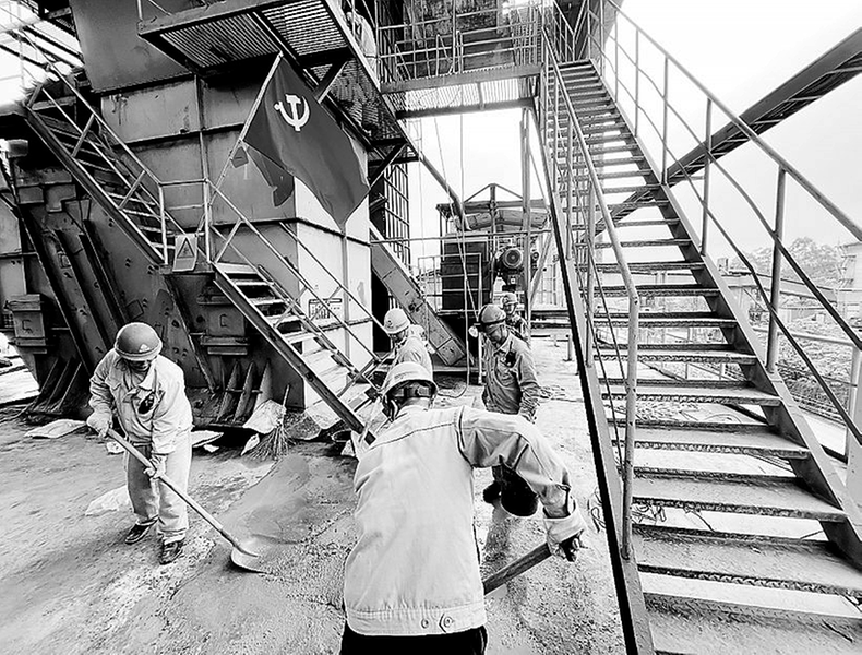 闭环管理提质效 攻坚克难显担当 巡维检班组建立了“发现-诊断-处理-反馈”的循环机制,充分发挥巡维检一体优势,分厂还以此为基础成立了党员示范岗。在开机期间,磨房3楼出现大量漏料情况,检查发现选粉机系统“天圆地方”处因磨损出现许多破洞,但是修补存在壁厚不足无法焊接的难题,班组最终确定了用倒浇注料临时处理这个办法。以班组党员为核心,通过紧密的接力配合,最终克服了浇注料搬运不便、施工位置狭窄等困难,顺利闭环保质保量完成了工作,充分发挥了党员示范岗的模范带头作用。在党员示范岗的感召下,分厂员工们进一步解放思想,创新了工作思路,人效得到有效提升。