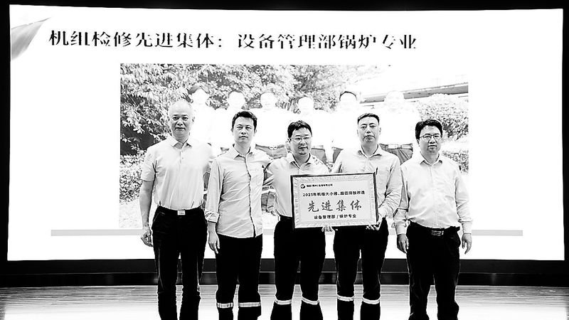 (罗克进 摄影报道)图为福能贵点设备管理部锅炉专业获公司检修先进集体奖项
