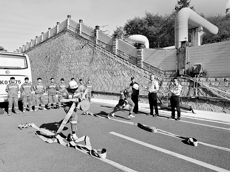 ①11月25日,鸿山热电公司专职消防队业务技能竞赛火热开赛,16名专职消防队员同台竞技、切磋比拼,以实战化标准检验训练成效,锤炼灭火救援硬本领。 (陈建华 摄)
