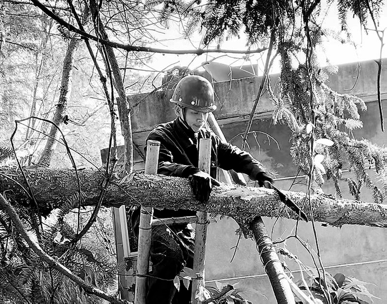 ③近日,位于福建煤电电力安装检修公司35kV铜锣坪变电站生活区内的一棵边坡松树,因受松毛虫害影响突然倒塌,横阻于生活区域内。该公司永定车间接到险情通知后,迅速响应,立即组织作业人员赶赴现场进行隐患处置。 (陈先英 摄)