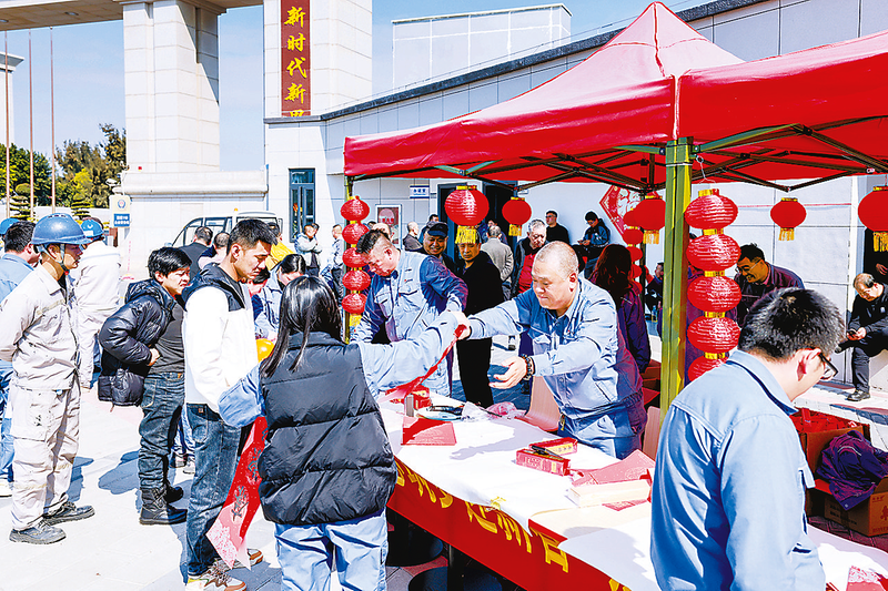 2月2日至3日,福海创公司工会开展“匠心筑梦迎新春・龙马精神启新程”送春联活动。职工可自由挑选现场手写春联,也可以领取成品春联,充分满足个性化需求。 (陈文鹏郑杰鹏 摄)