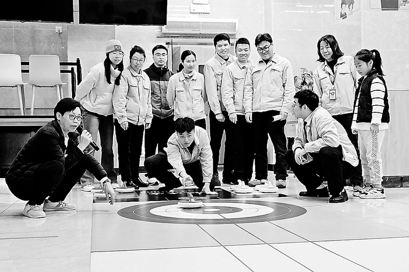 3月3日,石狮热电公司举办元宵节趣味活动,广大员工欢聚一堂,共度佳节。图为“旱地冰壶”游戏。 (苏永洪 摄)